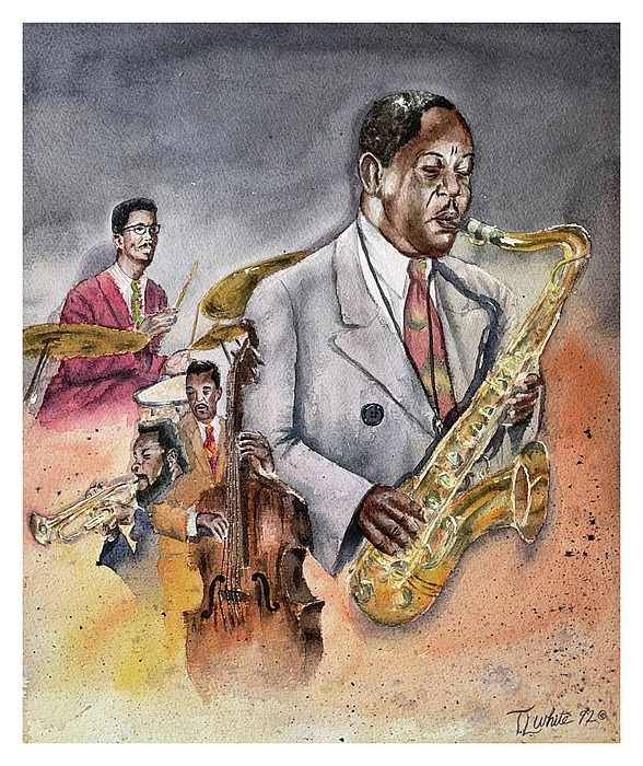 3 A.M Jam Session is a watercolor painting depicting smooth sounds of the saxophone, trumpet, piano, and bass for your listening pleasure.