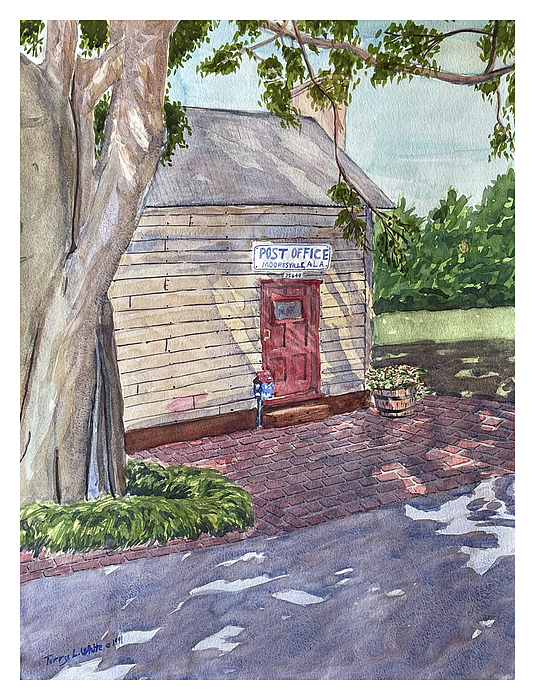 Mooresville Post Office is a watercolor painting of one of Alabama’s oldest operational postal buildings constructed after the 1840’s.